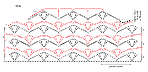 GAUGE: 3 pattern repeats = about 7" [18 cm]; 5 rows = 4" [10 cm] in body pattern. Note: One pattern repeat consists of (small-shell, ch 4, sc, ch 4). CHECK YOUR GAUGE. Use any size hook to obtain the gauge given.