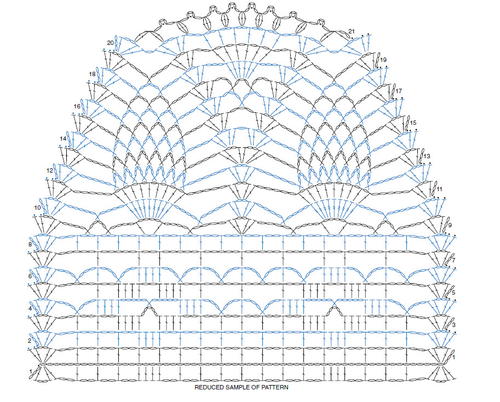Row 19: Turn, slip st in first 2 dc, beg-shell in first ch-2 space, ch 3, skip next ch-3 space, sc in next ch-4 space, ch 3, skip next ch-3 space, shell in ch-2 space of next shell, *ch 2, skip next ch-3 space, dc in next dc, [ch 1, dc in next dc] 5 times, ch 2, skip next ch-3 space, shell in ch-2 space of next shell, ch 3, skip next ch-3 space, sc in next ch-4 space, ch 3, skip next ch-3 space, shell in ch-2 space of next shell; repeat from * across – 26 shells, 78 dc, 26 ch-3 spaces, 24 ch-2 spaces and 60 ch-1 spaces.